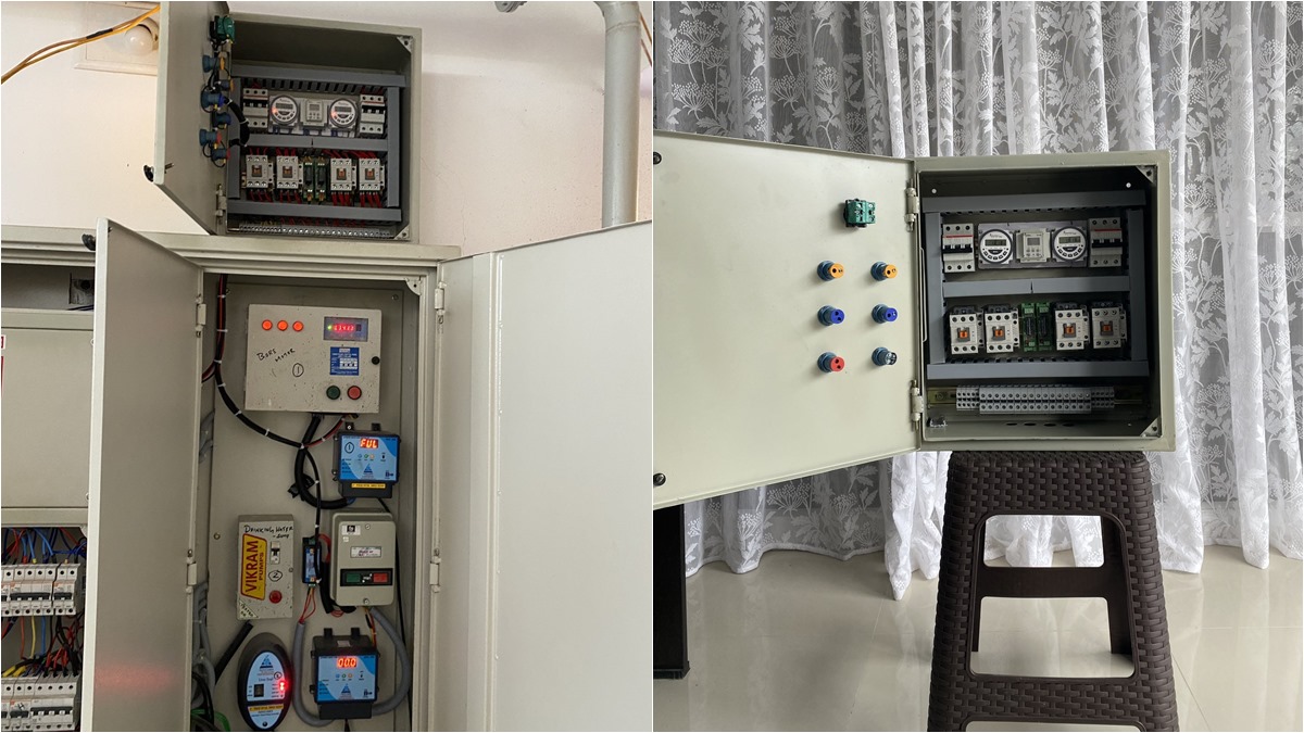 சோலார் பவர் பிளாண்ட்க்கான செய்யும் முதலீடு எடுக்க அதிக காலம் எடுக்கும் என்பதால்... குறைவான செலவில் 8KW க்கு சோலார் பவர் பிளாண்ட் நிறுவி அதில் VFD Drive மாட்டி அதில் இருந்து பகல் நேரத்தில் சோலார் பவர் வழியாக 5hp & 2hp மோட்டார்களை ஓட்டி தண்ணீரை 25 லிட்டர் ரிசர்வு செய்யும் அளவுக்கு செட் செய்து அதற்கான ஒரு ஆட்டோமேட்டிக் ( பகல் நேரத்தில் சோலார் பவர் வழியாக ஓட்டி இரவு நேரங்களில் EB பவர்ல ஆன் ஆவது போல ) கன்ட்ரோல் பேனல் ரெடி செய்து ஆன் செய்தோம்.