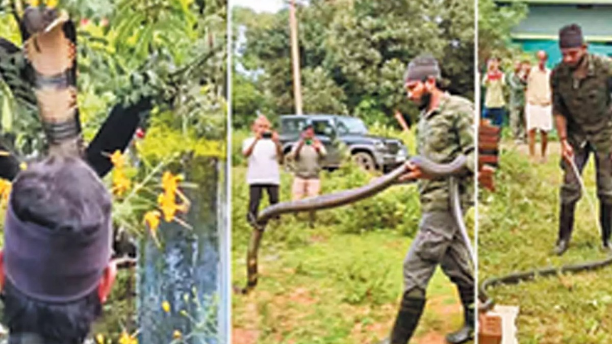 பாம்பு பிடி வீரர்கள் சுமார் இரண்டு மணி நேரம் போராடித்தான் அந்த ராஜநாகத்தை மீட்டு வெளியே எடுத்து வந்தனர். அந்த ராஜநாகம் சுமார் 12 அடி நீளம் இருந்துள்ளது... அந்த பாம்பின் உடல்நிலை பற்றி வனத்துறையினர் ஆய்வு செய்திருக்கிறார்கள்.