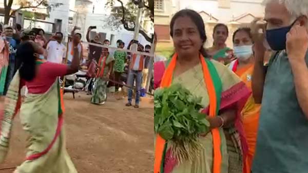 அப்போது முதியவர் ஒருவர் கையில் கீரை கட்டுடன் வானதி சீனிவாசனுடன் செல்ஃபி எடுக்க முயன்றார், அப்போது அவரது கையில் இருந்த கீரைகட்டு செல்ஃபி எடுக்க இடையூறாக இருந்தது. இதனால் சற்றும் யோசிக்காமல் கீரைத் தட்டை, வானதி சீனிவாசன் தன் கையில் வாங்கி வைத்துக் கொண்டார்.