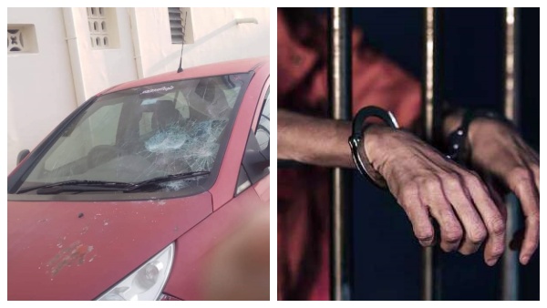 கோஷ்டி மோதலில் இந்து முன்னணி பிரமுகர் கார் மீது கல்வீச்சு- இந்து முன்னணி நிர்வாகிகள் 2 பேர் கைது