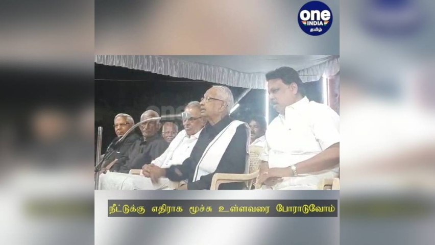 அப்போது, புதிய கல்விக்கொள்கை, நீட் தேர்விற்கு எதிராக மாணவர்களின் நலனை கருத்தில் கொண்டு தங்களது இறுதி மூச்சு உள்ளவரை போராடுவோம் என அவர் தெரிவித்தார். தொடர்ந்து பேசிய அவர், "கருப்புச்சட்டைக்காரன் காவலுக்கு கெட்டிக்காரன் என்பதை போல எங்களது வேலை உங்களுக்கு சொல்வது. ஆளுநர் அவரது பணியை செய்யவில்லை.