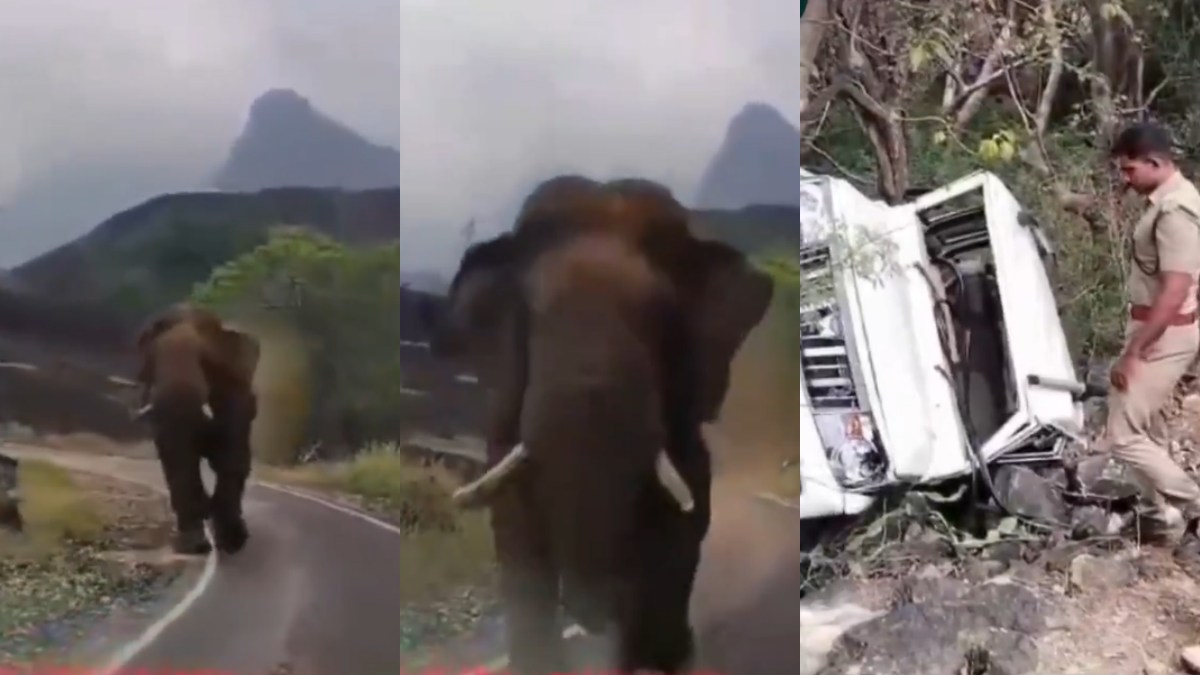 அவன் குறுக்க மட்டும் போயிறாதீங்க சார்.. பொள்ளாச்சியில் பொலிரோவைக் கவிழ்த்த முரட்டு யானை! பரபர வீடியோ