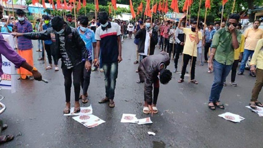 இதனிடையே திண்டுக்கல்லில் நடைபெற்ற ஆர்ப்பாட்டத்தில் பேசிய இந்து மக்கள் கட்சியின் மாநில துணைப் பொதுச்செயலாளர் தர்மன், நடிகர் சூர்யாவை செருப்பால் அடித்தால் ரூ1 லட்சம் பரிசு வழங்கப்படும் என அறிவித்தார். இந்த சம்பவங்கள் பெரும் பரபரப்பை ஏற்படுத்திய நிலையில் கோவையில் சூர்யாவை கண்டித்து இந்து இளைஞர் முன்னணியினர் இன்று போராட்டம் நடத்தினர்.