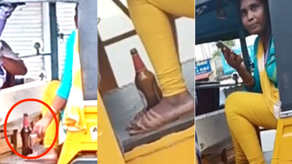 ஆட்டோவுக்குள் உட்கார்ந்து ஒரு பெண் தண்ணி அடிக்கும் வீடியோ வைரலாகிறது