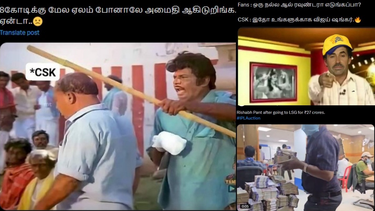 சென்னை: 2025 ஐபிஎல் தொடரில் சர்ப்ரைஸ் அளிக்கும் விதமாக நேற்று சுவாரசியமான சம்பவங்கள் பல நடந்தன. முக்கியமான சில வீரர்கள் நேற்று ஏலம் போனார்கள். தொடக்கத்தில் சிஎஸ்கே அணி மிக்ஸர் சாப்பிட்டாலும் கடைசி கட்டத்தில் முக்கியமான வீரர்களை எடுத்தனர். இதை வைத்து நெட்டிசன்கள் மீம்ஸ் போட்டு வருகின்றனர்.