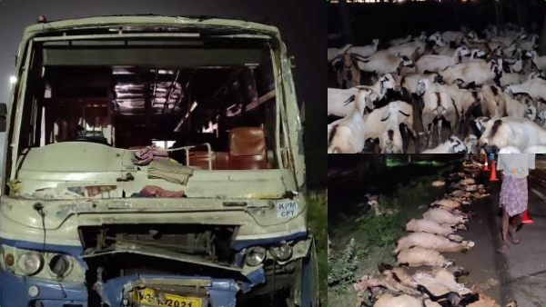 அதிகாலையில் பதற வைத்த கோர சம்பவம்.. தேசிய நெடுஞ்சாலையில் பேருந்து மோதி உரிமையாளர், 100 ஆடுகள் பலி!