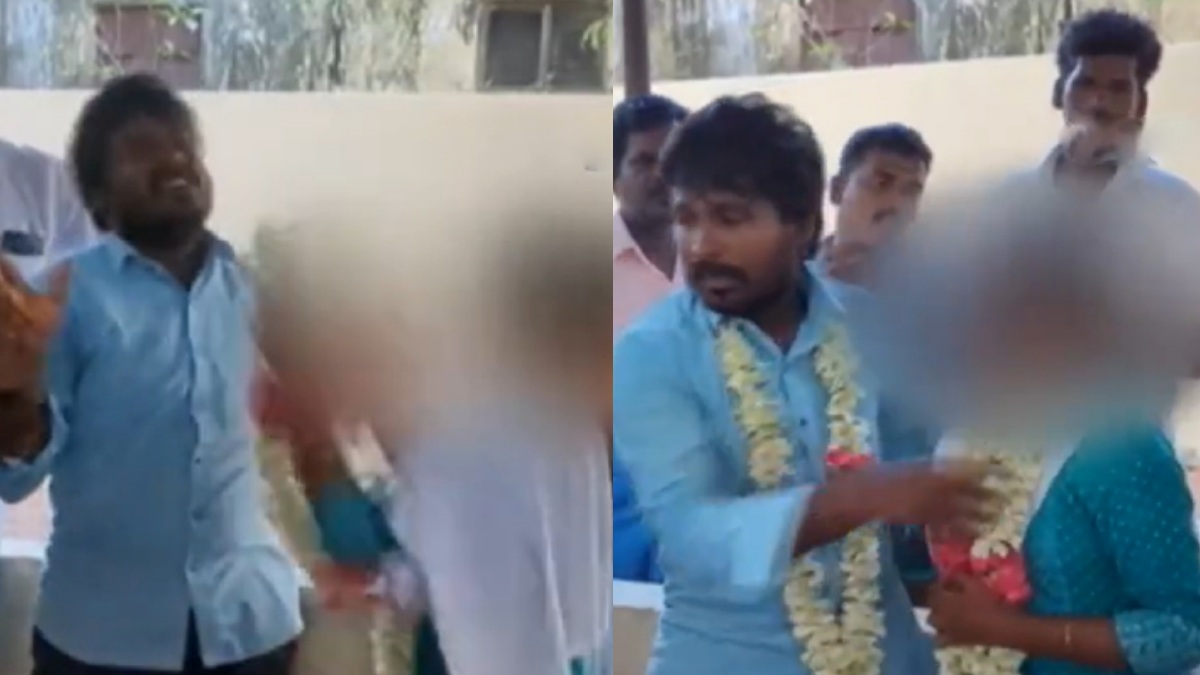 அப்போது தமிழரசன் மற்றும் இளம்பெண்ணுக்கு திருமணம் செய்து வைக்க முடிவு எடுக்கப்பட்டது. தமிழரசன் மற்றும் இளம்பெண்ணை போலீஸ் நிலையம் அருகே உள்ள கோவிலுக்கு அழைத்து சென்று திருமணம் செய்து வைக்க முன்றனர். அப்போது தமிழரசன் திருமணத்துக்கு ஒப்புக்கொள்ளவில்லை. தொடர்ந்து பிடிவாதம் பிடித்தார். மேலும் இளம்பெண்ணின் கழுத்தில் மாலை அணிவிக்க மறுத்ததோடு, தனக்கு அணிவிக்கப்பட்ட மாலையை தூக்கி வீசிவிட்டு அங்கிருந்து எஸ்கேப்பாக முயன்றார்.