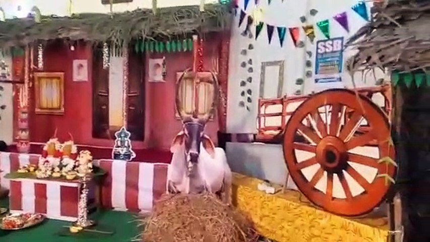 பிறகு, அபிதாவை தாய்மாமன் பிரபு, மாட்டு வண்டியில் உட்கார வைத்து, ஊர்வலமாக மண்டபத்தை வந்தடைந்தார்.. பெண்ணின் தாய்மாமன்கள் பூக்குடையை தூக்க, அந்த குடையின் நடுவில் பெண் நடந்துவர, விழா மேடைக்கு அழைத்து செல்லப்பட்டனர்.. தமிழ் பாரம்பரிய வாழ்வியலை பறைசாற்றும் வகையில் கீற்றுகளால் ஓலை கூரை குடில்( வீடு) அமைக்கப்பட்டிருந்து.. இருபுறமும் காகித அட்டையால் மாடு, கட்டவண்டி, ஏர் கலப்பைகளை தூக்கி செல்லும் பெண் விவசாயி, ஆண் விவசாயி படங்களும் அமைக்கப்பட்டிருந்தது.