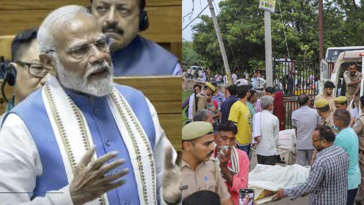 இன்று நாடாளுமன்றத்தில் விவாதத்தின் போதே, ஹத்ராஸ் மாவட்டத்தில் ஏற்பட்ட துரதிர்ஷ்டவசமான விபத்து குறித்து பிரதமர் நரேந்திர மோடி ஆழ்ந்த இரங்கல் தெரிவித்தார். “இந்த விவாதத்திற்கு இடையே எனக்கு ஒரு சோகமான செய்தி எனக்கு கிடைத்துள்ளது. உத்தரப்பிரதேசம் ஹத்ராஸில் ஏற்பட்ட கூட்ட நெரிசலில் சிக்கிப் பலர் பரிதாபமாக உயிரிழந்ததாக தகவல்கள் வந்துள்ளன. இறந்தவர்களுக்கு இரங்கலைத் தெரிவித்துக்கொள்கிறேன். இந்த விபத்தில் காயமடைந்தவர்கள் விரைவில் குணமடைய பிரார்த்திக்கிறேன்,” என்றார்.