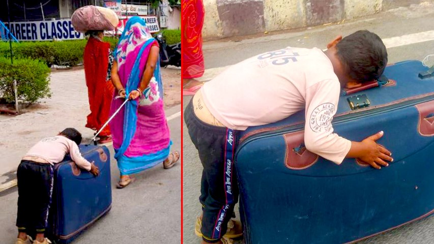நடந்து சோர்ந்த குழந்தை.. சூட்கேஸில் தூங்கியபடி.. இழுத்துச் சென்ற தாய்.. இறைவா ஏன் இந்த கொடுமை!