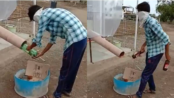 அந்த வகையில் மதுபான பாட்டில்களையும் விற்பனையாளரை தொடாமல் வாங்கும் புதிய ஐடியா வைரலாகி வருகிறது. வடஇந்தியாவில் ஒரு மதுபான கடையில் வாடிக்கையாளருக்கும் கடைக்கும் நீண்ட பைப் போடப்பட்டுள்ளது. அந்த பைப் வழியாக பிளாஸ்டிக் பாட்டிலை கடைக்காரர்கள் அனுப்புகிறார்கள்.