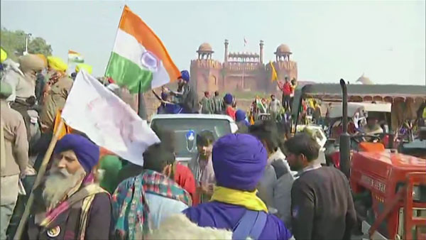 போராட்டத்தில் திடீர் திருப்பமாக குடியரசு தின அணிவகுப்பு நடைபெற்ற செங்கோட்டை பகுதிக்கு விவசாயிகள் வாகனத்தை திருப்பினர். 100க்கனக்கான விவசாயிகள் டிராக்டர்களுடன் டெல்லி செங்கோட்டையை நோக்கி முன்னேறினர். ஒரு கட்டத்தில் செங்கோட்டையை அடைந்துள்ளனர். அங்கு விவசாயிகளின் கொடி ஏற்றப்பட்டுள்ளது. குடியசு தின அணிவகுப்பில் பங்கேற்ற அனைத்து வாகனங்களும் செங்கோட்டை பகுதியில் தான் நிறுத்தி வைக்கப்பட்டுள்ள நிலையில் அந்த பகுதிகளில் விவசாயிகள் குவீந்து வருவதால் பரபரப்பு நிலவுகிறது.