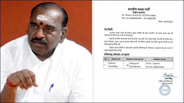 கன்னியாகுமரி வேட்பாளர் பொன். ராதாகிருஷ்ணன்.. இந்தி, ஆங்கிலத்தில் அறிவித்த பாஜக