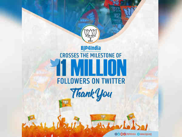 பாஜகவின் ட்விட்டர் பக்கத்தில் ஃபாலோயர்ஸ் எண்ணிக்கை 1.10 கோடியாக அதிகரிப்பு!