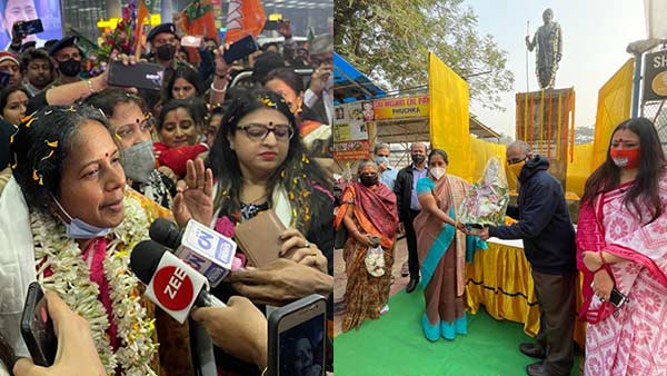 அந்த வகையில் நேற்று மேற்கு வங்கம் மாநிலத்துக்கு சென்ற வானதி சீனிவாசனுக்கு உற்சாக வரவேற்பு அளிக்கப்பட்டதுடன் முண்டாசு கவிஞர் பாரதியாரின் சிலைக்கு அஞ்சலி செலுத்தும் நிகழ்ச்சிக்கும் ஏற்பாடு செய்யப்பட்டிருந்தது.