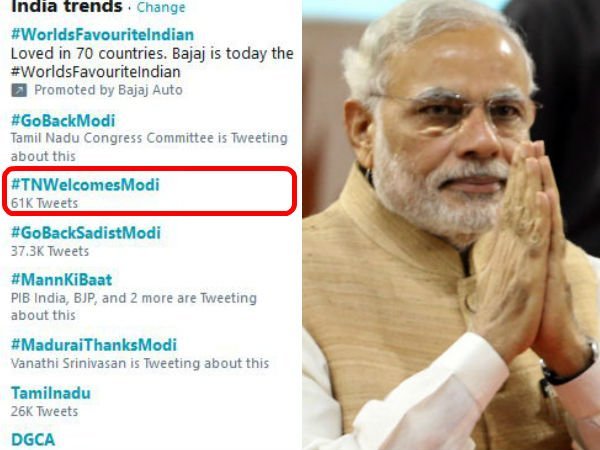 #TNWelcomesModi ஹேஷ்டேக்கை டுவிட்டரில் டிரென்டாக்கிய பாஜகவினர்