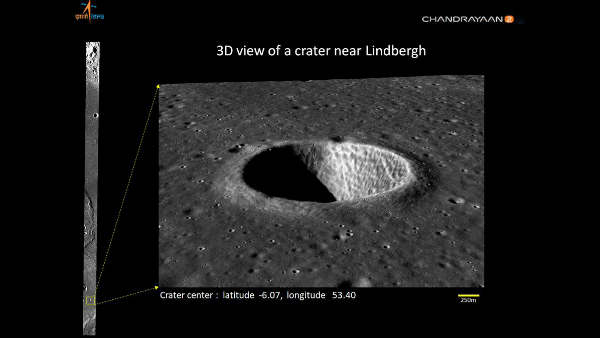ஆர்பிட்டரில் உள்ள டெரைன் கேமரா நிலவின் மேற்பரப்பை தெளிவாக படம் பிடித்து அனுப்பியுள்ளது. அதில் பள்ளங்களும் மேடுகளும் இருப்பது நன்றாகவே தெரிகிறது. இந்த படம் முப்பரிமானமாக எடுக்கப்பட்டது.