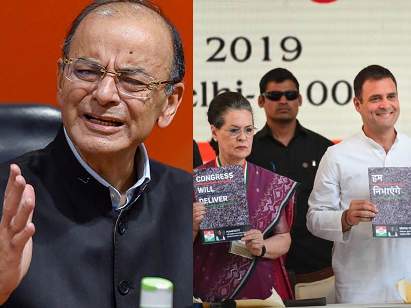 இதுதொடர்பாக கருத்து தெரிவித்துள்ள மத்திய நிதி அமைச்சர் அருண் ஜேட்லி, காங்கிரசின் பல வாக்குறுதிகள் நிறைவேற்ற முடியாதவை. சில வாக்குறுதிகள் நாட்டுக்கே ஆபத்தானவை. பிரிவினைவாதிகள், பயங்கரவாதிகள் விரும்பும் வகையில் தேர்தல் அறிக்கையில் அம்சங்கள் உள்ளன. தகுதியற்றவர்கள் இந்த தேர்தல் அறிக்கையை தயாரித்துள்ளனர் என்றார்.