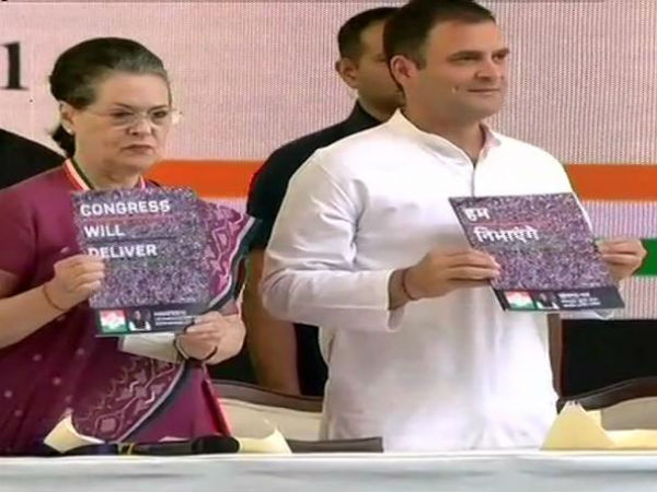 காங்கிரஸ் கட்சியின் தேசிய தலைவர் ராகுல் காந்தி, டெல்லியில் உள்ள அகில இந்திய காங்கிரஸ் கமிட்டியின் தலைமையகத்தில் தேர்தல் அறிக்கையை இன்று வெளியிட்டார். இந்த நிகழ்வின்போது முன்னாள் பிரதமர் மன்மோகன் சிங், சோனியா காந்தி, தேர்தல் அறிக்கை குழு தலைவர் ப.சிதம்பரம் உள்ளிட்ட மூத்த கட்சித் தலைவர்கள் உடனிருந்தனர்.
