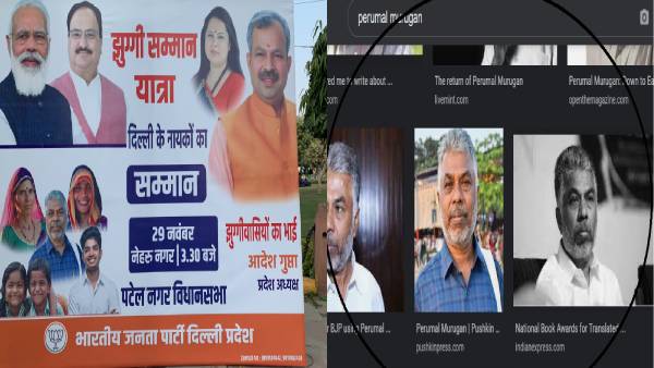 டெல்லி பாஜக பிரசார பேனரில் குடிசைவாசியாக தமிழ் எழுத்தாளர் பெருமாள் முருகன் படம்- புதிய சர்ச்சை