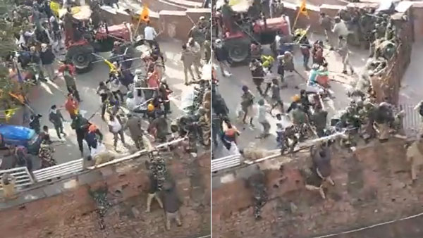டெல்லி செங்கோட்டையில் போலீசார் மீது கொடூர தாக்குதல்- பதறவைக்கும் அதிர்ச்சி வீடியோ