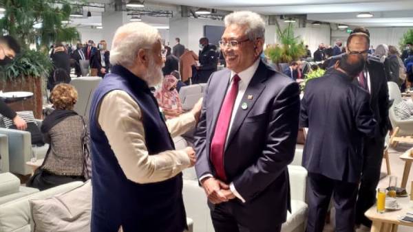 இந்தக் கிளாஸ்கோ பருவநிலை மாநாடு நடைபெறும் இடத்தில் கோத்தபாய ராஜபக்சேவை பிரதமர் மோடி சந்தித்துப் பேசினார். மேலும், இந்த சந்திப்பு குறித்து படங்களை ட்விட்டரில் பகிர்ந்துள்ள பிரதமர் மோடி, கிளாஸ்கோ உச்சி மாநாடு பல்வேறு உலகத் தலைவர்களுடன் உரையாட ஒரு அற்புதமான வாய்ப்பை வழங்குவதாகப் பதிவிட்டுள்ளார். ஸ்காட்லாந்து தமிழர்கள் கோத்தபாய ராஜபக்சேவுக்கு எதிராகப் போராட்டம் நடத்தி வரும் நிலையில், பிரதமர் மோடி ராஜபக்சேவை சந்தித்துள்ளது சலசலப்பை ஏற்படுத்தியுள்ளது.
