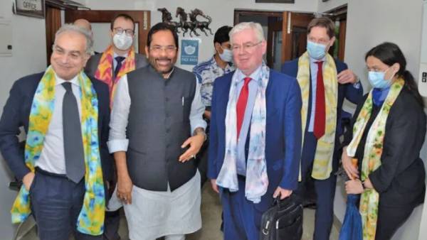 மனித உரிமைகளுக்கான ஐரோப்பிய ஒன்றியத்தின் சிறப்புப் பிரதிநிதி எமன் கில்மோர் இந்திய அரசின் பிரதிநிதிகள் உடனான தனது சந்திப்புகளில் தேசத்துரோகம் மற்றும் பயங்கரவாத எதிர்ப்புச் சட்டம், நாட்டில் சிறுபான்மையினரின் நிலை, வகுப்புவாத வன்முறை மற்றும் ஜம்மு காஷ்மீர் நிலைமை போன்ற பிரச்சினைகள் குறித்து விரிவாக விவாதித்ததாகக் கூறினார். இந்தியாவுக்கான ஐரோப்பிய ஒன்றிய தூதர் உகோ அஸ்டுடோ உள்ளிட்டோர் அடங்கிய இந்த ஐரோப்பிய ஒன்றிய குழு சிறுபான்மை விவகார அமைச்சர் முக்தார் அப்பாஸை டெல்லியில் சந்தித்தது.