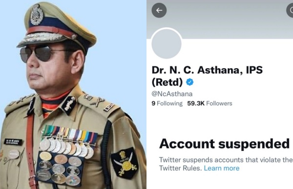 இதுபோது தொடர்ந்து மனித உரிமைகள், சிறுபான்மையினர்களுக்கு எதிராக ட்விட்டரில் பதிவிட்டு வந்த என்.சி.அஸ்தானாவுக்கு பத்திரிகையாளர்கள், மனித உரிமை ஆர்வலர்கள், காவல்துறை, நிர்வாகத்துறை அதிகாரிகளும் கண்டனம் தெரிவித்து வந்தனர். மேலும் அவரது ட்விட்டர் பதிவுகளையும் பலர் புகார் செய்திருந்தனர். இந்த நிலையில் அவரது கணக்கை ட்விட்டர் நிறுவனம் முடக்கி இருக்கிறது.