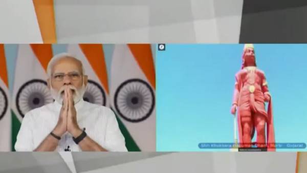 அனுமன் ஜெயந்தியையொட்டி குஜராத்தில் உள்ள 108 அடி உயர அனுமன் சிலையை பிரதமர் நரேந்திர மோடி காணொலி வாயிலாக இன்று திறந்து வைத்தார். அப்போது மோடி பேசுகையில் உங்கள் அனைவருக்கும், நாட்டு மக்களுக்கும் அனுமன் ஜெயந்தி வாழ்த்துக்கள். இந்த நல்ல சந்தர்ப்பத்தில் அனுமனின் இந்த பிரமாண்ட சிலை இன்று மோர்பியில் திறக்கப்பட்டுள்ளது. நாடு மற்றும் உலகம் முழுவதும் உள்ள அனுமன் பக்தர்களுக்கு இது மிகவும் பயன் உள்ளதாக இருக்கும்.