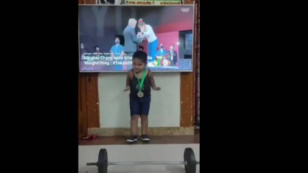 டெல்லி: ஒலிம்பிக் போட்டியில் 49 கிலோ உடல் எடைப்பிரிவில் பளுத்தூக்குதலில் வெள்ளிப்பதக்கம் வென்ற மீராபாய் சானுவை அப்படியே பார்த்து அதே போல் செய்த சிறுமியின் வீடியோ வைரலாகி வருகிறது.