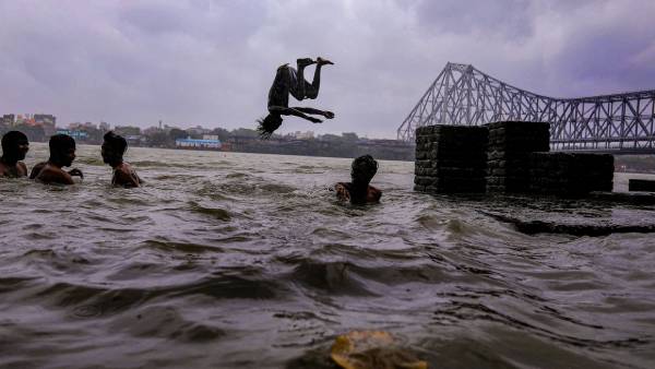 மேற்கு வங்கத்தில் உள்ள டயமண்ட் துறைமுகம் கனமழையால் மூழ்கியது. அங்கிருந்து தொழிலாளர்களை மீட்கும் போலீஸார்.