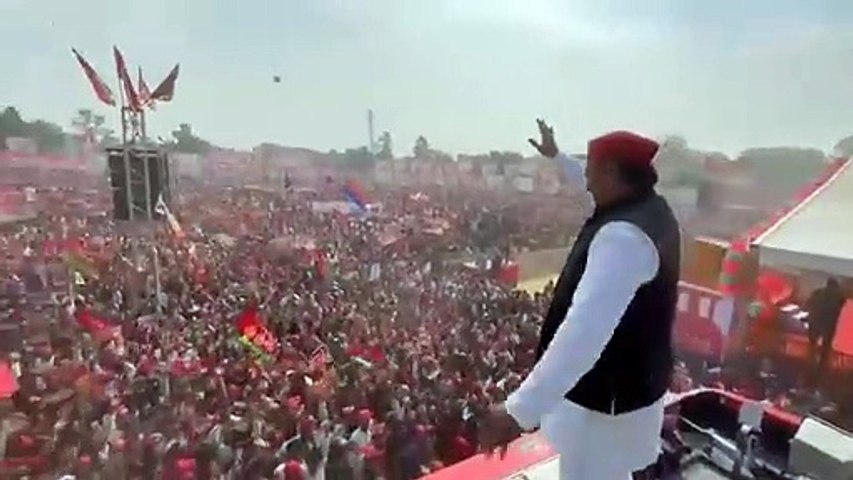 கண்ணுக்கு எட்டிய தூரம் வரை மனித தலைகளாக காட்சியளித்தன. இந்த வீடியோக்களை சமூக வலைதளங்களில் பலரும் ஷேர் செய்து வருகின்றனர். அகிலேஷ் யாதவுக்கு ஆதரவாக பெரிய அலை உருவாகி இருப்பது, இந்த கூட்டத்தை பார்த்தாலே தெரிகிறது என்று, அவர்கள் தெரிவிக்கிறார்கள்.