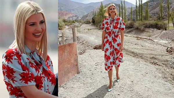 இதே ஆடையை இவான்கா கடந்த 2019-ஆம் ஆண்டு அர்ஜென்டினா பயணத்தின் போதும் அணிந்திருந்தார். கடந்த ஆண்டு செப்டம்பர் மாதம் அர்ஜென்டினா சென்றார். இந்த ஆடையின் மதிப்பு இந்திய அளவில் ரூ 1.7 லட்சம் ஆகும். கடந்த முறை இந்த ஆடையை அணிந்திருந்த இவான்கா, பேபி ப்ளூ நிறத்தினாலான காலணிகளை அணிந்திருந்தார். பாப் முடி அலங்காரம் செய்திருந்தார். ஆனால் இந்த முறை வித்தியாசமாக இருந்தார்.