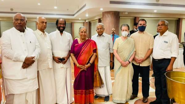 டெல்லி: குடியரசுத் துணைத் தலைவர் தேர்தலில் எதிர்க்கட்சிகளின் கூட்டணி வேட்பாளராக போட்டியிடும் மார்க்ரெட் ஆல்வாவுக்கு காங்கிரஸ் மூத்த தலைவர் மல்லிகார்ஜுன் கார்கே வழங்கிய இரவு விருந்தில் காங்கிரஸ், திமுக மற்றும் கூட்டணி கட்சிகளின் எம்.பி.க்கள் கலந்துகொண்டனர்.