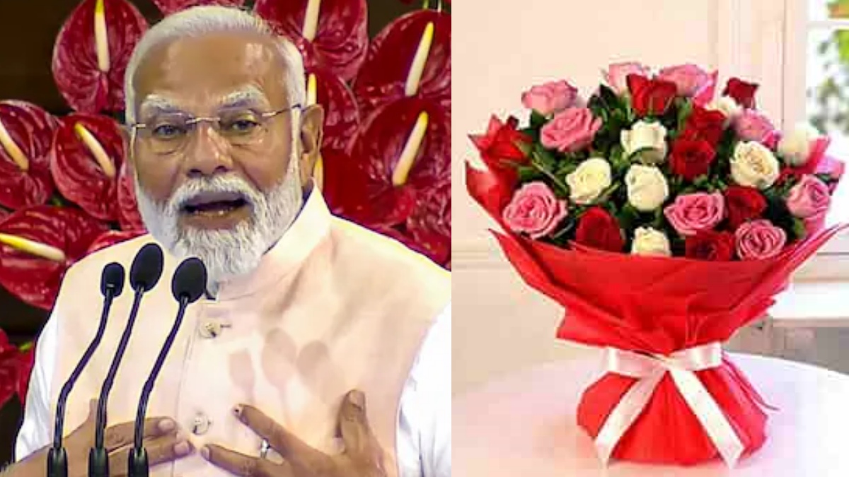 இந்நிலையில் தான் தற்போது இணையதளத்தில் வீடியோ ஒன்று வேகமாக பரவி வருகிறது. அதில் பிரதமர் மோடிக்கு பாஜக எம்பிக்கள், அரசியல் கட்சி தலைவர்கள் உள்பட கூட்டணி கட்சி எம்பிக்கள் வாழ்த்து தெரிவிக்கின்றனர். அப்போது அவர்கள் ஒரே பூங்கொத்தை மாற்றி மாற்றி கொடுத்து வாழ்த்து தெரிவிக்கின்றனர். அதாவது பிரதமர் மோடிக்கு ஒருவர் பூங்கொத்தை கொடுத்து வாழ்த்து தெரிவிக்கிறார். அந்த பூங்கொத்தை மோடி தனக்கு பின்னால் இருக்கும் டேபிளில் வைக்கிறார்.