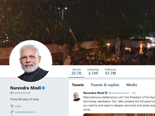 மக்களவை தேர்தலில் மாபெரும் வெற்றியை தொடர்ந்து இரண்டாவது முறையாக நாட்டின் பிரதமராக நரேந்திர மோடி நேற்று பதவியேற்றுக் கொண்டார். இந்நிலையில், பதவியேற்பதற்கு சில நிமிடங்களுக்கு முன்பாக ஃபேஸ்புக், ட்விட்டர் உள்ளிட்ட சமூக வலைதளங்களில் தனது முகப்பு படத்தை பிரதமர் மோடி மாற்றியுள்ளார்.