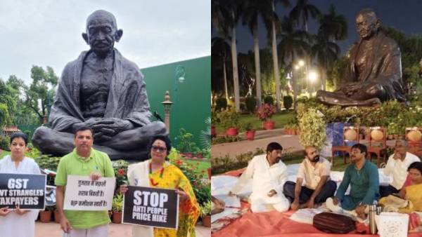 டெல்லி: நாடாளுமன்ற வளாகத்தில் 2-வது நாளாக சஸ்பெண்ட் செய்யப்பட்ட எம்.பி.க்கள் தொடர் போராட்டம்!