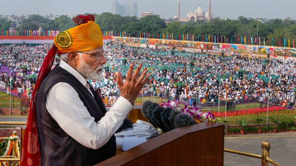 இந்தியாவின் 77-வது சுதந்திர தினத்தை முன்னிட்டு டெல்லி செங்கோட்டையில் பிரதமர் மோடி தேசியக் கொடியேற்றினார். பிரதமர் மோடி செங்கோட்டையில் தேசியக் கொடி ஏற்றுவது இது 10-வது முறையாகும். தேசியக் கொடி ஏற்றிய பிறகு நாட்டு மக்களுக்கு பிரதமர் மோடி உரையாற்றினார். அப்போது அவர், அரசின் இலக்குகள் மற்றும் சாதனைகள் குறித்து விரிவாக பேசினார்.