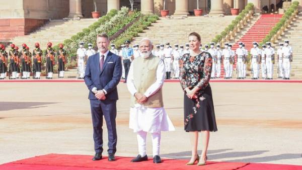 இன்று காலை இந்தியா வந்த டென்மார்க் பிரதமர் மெட்டே பிரடெரிக்சனை விமான நிலையம் சென்று பிரதமர் மோடி வரவேற்றார். மேலும் குடியரசுத் தலைவர் மாளிகையில் டென்மார்க் பிரதமருக்கு ராணுவ மரியாதையுடன் வரவேற்பு அளிக்கப்பட்டது