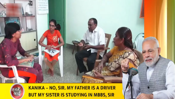 உங்க குடும்பத்தில் யாராவது மருத்துவ துறையில் இருக்கிறார்களா? என்று மோடி கேட்டதற்கு என்னோட அப்பா டிரைவர், என்னோட அக்கா இப்போ எம்பிபிஎஸ் படிக்கிறார் என்று சொன்னார் கனிகா, அதைக்கேட்ட மோடி.... ஓ... உன்னோட அப்பாவிற்கு வனக்கம். உன்னையும் உன் சகோதரியையும் நன்றாகவே கவனித்துக்கொள்கிறார் என்று சொல்லி வாழ்த்தினார். அவர் அனைவருக்கும் முன்மாதிரியாக இருக்கிறார் என்றும் சொன்னார் மோடி.