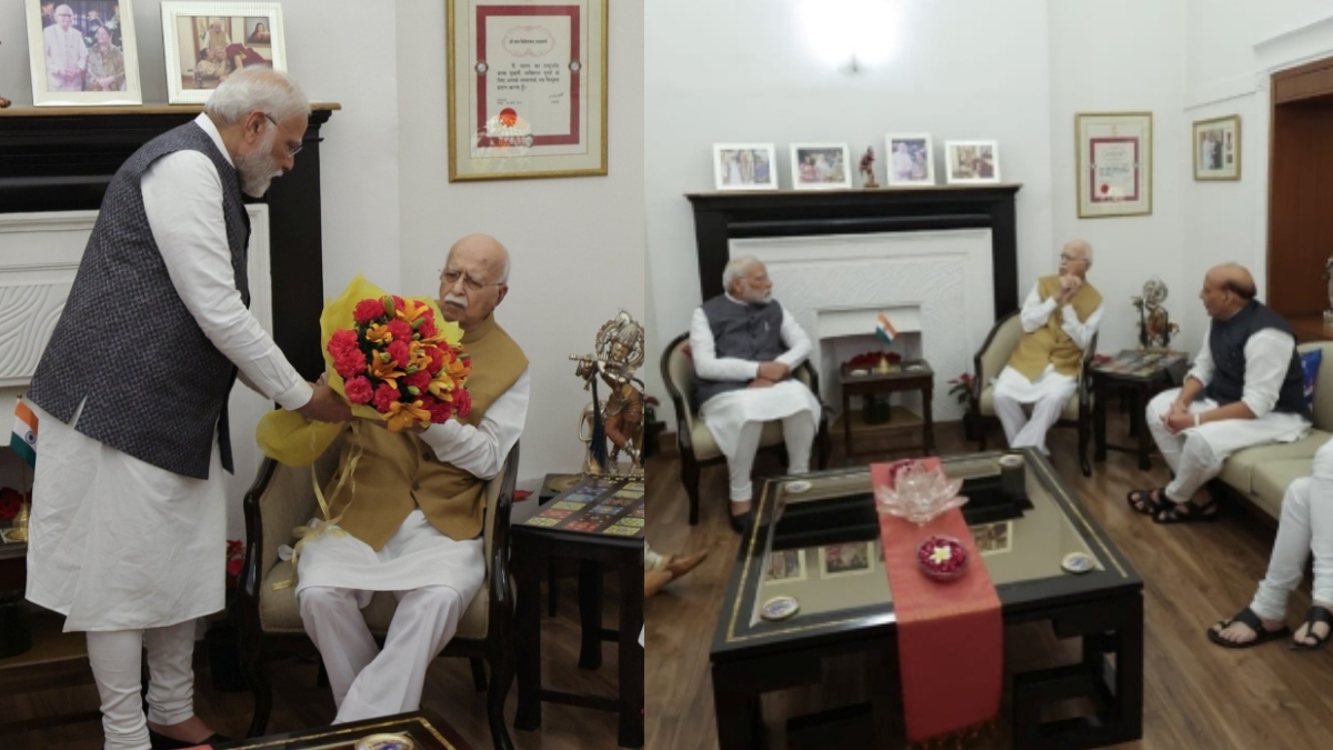 இந்நிலையில், மத்திய பிரதேச மாநிலத்தில் இன்று பிரச்சார பயணத்தை முடித்துக்கொண்டு டெல்லி சென்ற பிரதமர் மோடி, அத்வானியின் இல்லத்திற்கு நேரில் சென்று அவரைச் சந்தித்து பூங்கொத்து கொடுத்து, பிறந்தநாள் வாழ்த்துகளைத் தெரிவித்தார். மேலும், அத்வானியின் உடல் நலம் குறித்து விசாரித்தார்.