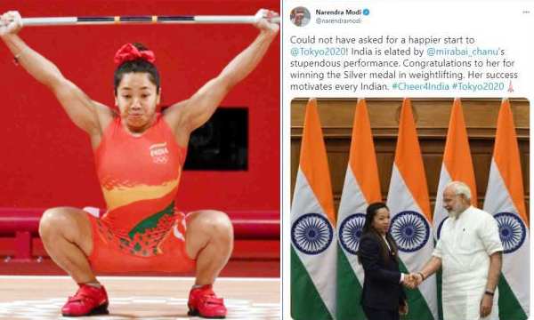 பிரதமர் நரேந்திர மோடியும் வெள்ளி பதக்கம் வென்ற மீராபாய் சானுக்கு பாராட்டு தெரிவித்துள்ளார். இது தொடர்பாக பிரதமர் மோடி வெளியிட்டுள்ள டுவிட்டர் பதிவில், ' பளுதூக்குதலில் வெள்ளிப் பதக்கம் வென்றதற்காக மீராபாய் சானுக்கு வாழ்த்துக்கள். இதனால் இந்தியா மகிழ்ச்சி அடைகிறது. மிகவும் அற்புதமான செயல்திறன். மீராபாய் சானு வெற்றி ஒவ்வொரு இந்தியரையும் ஊக்குவிக்கிறது' என்று மோடி கூறியுள்ளார்.