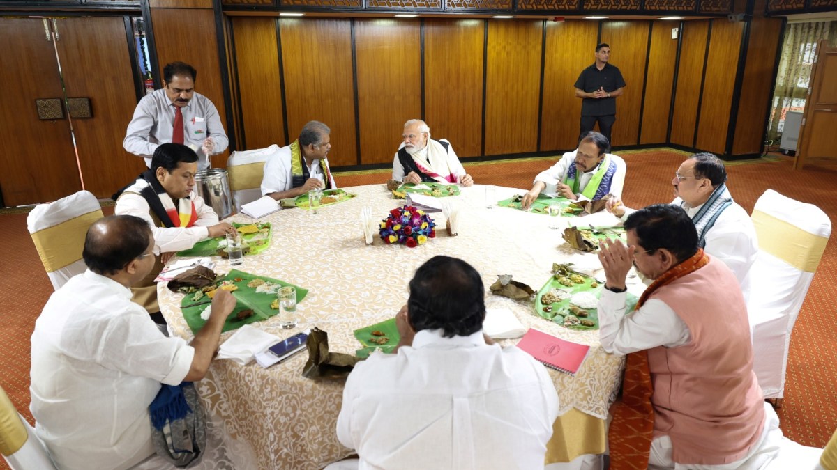 இந்த விருந்தில் அதிமுக ராஜ்ய சபா எம்பி தம்பிதுரை அருகில் மோடி அமர்ந்து இருந்தார். இன்னொரு பக்கம் தமிழ் மாநில காங்கிரஸ் ஜிகே வாசன் அமர்ந்து இருந்தார். இந்த சந்திப்பில் பணியாரம், அப்பம், புளியோதரை, பருப்பு சாதம் போன்றவை உணவாக வழங்கப்பட்டு உள்ளன.