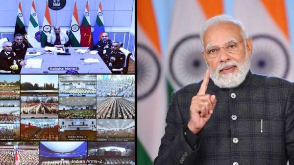 புதிய இந்தியா, புதுப்பிக்கப்பட்ட திறனுடன் நிரப்பப்பட்டுள்ளதாகவும், நமது ஆயுதப்படையை வலுப்படுத்துவதுடன், தற்சார்பை அடைவதற்கான முயற்சிகள் நடைபெற்று வருவதாகவும் பிரதமர் கூறினார். 21-ம் நூற்றாண்டில் போரிடும் வழிகள் மாற்றம் அடைந்து வருவதாக அவர் கூறினார். நேரடி போர் அல்லாத புதிய சவால்கள் குறித்து விவாதித்த பிரதமர், தொழில்நுட்ப ரீதியாக மேம்படுத்தப்பட்ட வீரர்கள் நமது ஆயுதப்படையில் முக்கியப் பங்கு வகிப்பார்கள் என்று கூறினார். குறிப்பாக, இன்றைய இளைய தலைமுறையினர் இந்த திறனை பெற்றுள்ளதாக குறிப்பிட்ட அவர், வருங்காலத்தில் நமது ஆயுதப்படையில் அக்னி வீரர்கள் முக்கிய பங்கு வகிப்பார்கள் என்றார்.