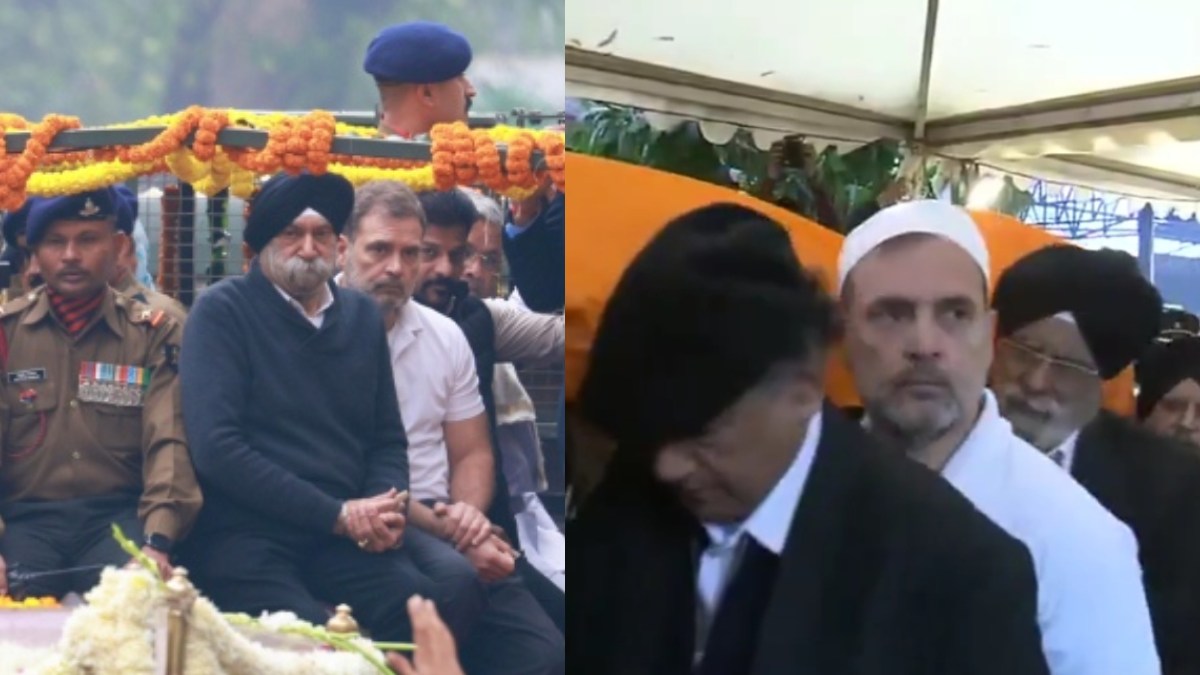 மன்மோகன் சிங் உடலை தோளில் சுமந்த ராகுல்.. இறுதி சடங்கில் கலங்கி நின்ற மோடி, சோனியா, கார்கே!