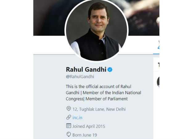 இதற்கு முன்பு ராகுல் காந்தியின் டிவிட்டர் பக்கத்தில் (https://twitter.com/RahulGandhi?lang=en) ராகுல் காந்தி, தலைவர், இந்திய தேசிய காங்கிரஸ் என்று இடம் பெற்றிருந்தது. தற்போது அதை நீக்கி விட்டார் ராகுல்.