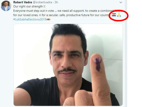 இதையடுத்து வாக்களித்த பிறகு மற்றவர்களுக்கு விழிப்புணர்வு ஏற்படுத்தும் வகையில் கைவிரல் மையுடன் செல்பி புகைப்படத்தை டுவிட்டரில் ராபர்ட் வதேரா வெளியிட்டிருந்தார். அதில் அவர் கூறுகையில் நமது உரிமையே நமது பலம்.