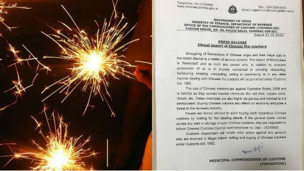 சீன பட்டாசு விற்றாலும், வாங்கினாலும் தண்டனை.. கஸ்டம்ஸ் அதிரடி அறிவிப்பு