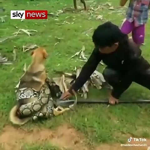 எனினும், தலையை லாவகமாக கையில் ஒரு சிறுவன் இறுக்கமாக பிடித்துக்கொள்கிறான். மீதமுள்ள இரண்டு சிறுவர்களும் நாயை இறுக்கமாக சுற்றியுள்ள பாம்பின் பிடியை விடுவிக்க போராடுகின்றனர். துணிச்சலான போராட்டத்திற்கு பிறகு நாய் பத்திரமாக மீட்கப்படுகிறது. பார்ப்பவர்களை மெய்சிலிர்க்க வைக்கும் இந்த வீடியோ சமூக வலைத்தளங்களில் டிரெண்ட் ஆகி வருகிறது. 40 வினாடிகள் மட்டுமே ஓடும் இந்த வீடியோ லட்சக்கணக்கான பார்வையாளர்களை கடந்துள்ளது. ஏராளாமானோர் லைக்குகளையும் போட்டு வருகின்றனர். இந்த வீடியோவை பார்த்த நெட்டிசன்கள் பலரும், சிறுவர்களின் துணிச்சல் மெய்சிலிர்க்க வைப்பதாக பதிவிட்டு வருகின்றனர்.