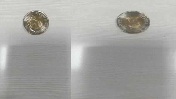 இரண்டு நிறத்தில் இந்த நாணயம் உருவாக்கப்பட்டுள்ளது. உள் வட்டத்தில் வெளிர் தங்க நிறத்தில் இருக்கும்படியும் வெளி வட்டத்தில் வெள்ளை நிறமும் இருக்கும்படியும் இந்த நாணயம் டிசைன் செய்யப்பட்டுள்ளது. அதோடு அசோக ஸ்தூபி இடம் பெற்றுள்ளது. 'சத்யமேவ ஜெயதே' என்ற வாசகமும் இடம்பெற்றுள்ளது. மற்றொரு இடத்தில் இந்தியில் 'பாரத்' என்றும் ஆங்கிலத்தில் இந்தியா என்றும் எழுதப்பட்டிருக்கிறது.
